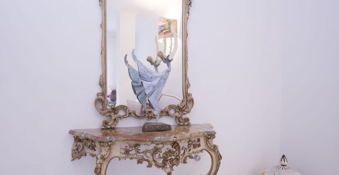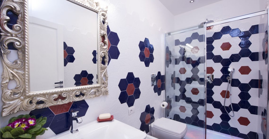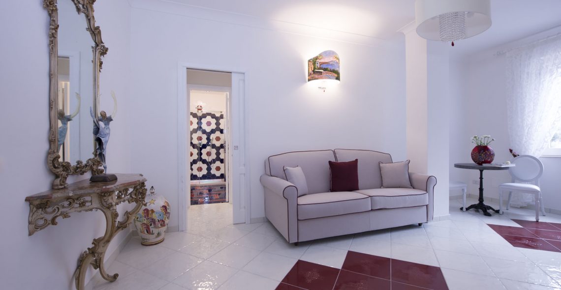 The bathroom has a shower and is decorated with the well known Vietri ceramic tiles. The room has also a spacious wardrobe.